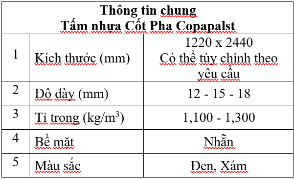 Tấm nhựa Cốt pha COPAPLAST là một vật liệu mới lần đầu xuất hiện ở thị trường Việt Nam, mang theo những tính năng vượt trội so với các loại cốt pha hiện đang được sử dụng trên thị trường. Được tạo ra để trở thành một giải pháp Cốt pha hiệu quả cho ngành xây dựng, thân thiện với môi trường và với người sử dụng.