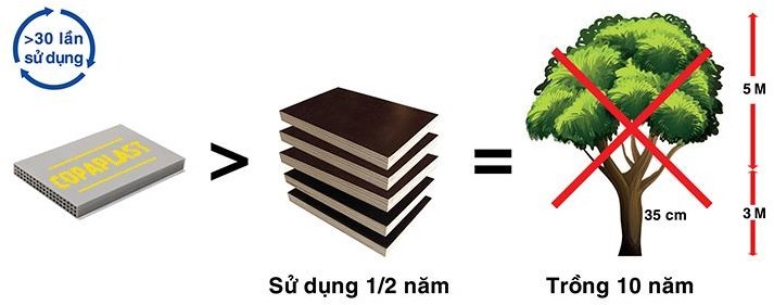 Thân thiện môi trường: Sử dụng vật liệu Copaplast là một hành động thiết thực để giảm thiểu lượng rác thải xây dựng và sự tiêu thụ quá mức tài nguyên rừng; góp phần mang đến hình ảnh xanh – sạch cho nghành xây dựng dương đại.