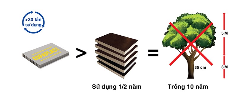 Thân thiện môi trường: Sử dụng vật liệu Copaplast là một hành động thiết thực để giảm thiểu lượng rác thải xây dựng và sự tiêu thụ quá mức tài nguyên rừng; góp phần mang đến hình ảnh xanh – sạch cho nghành xây dựng dương đại.